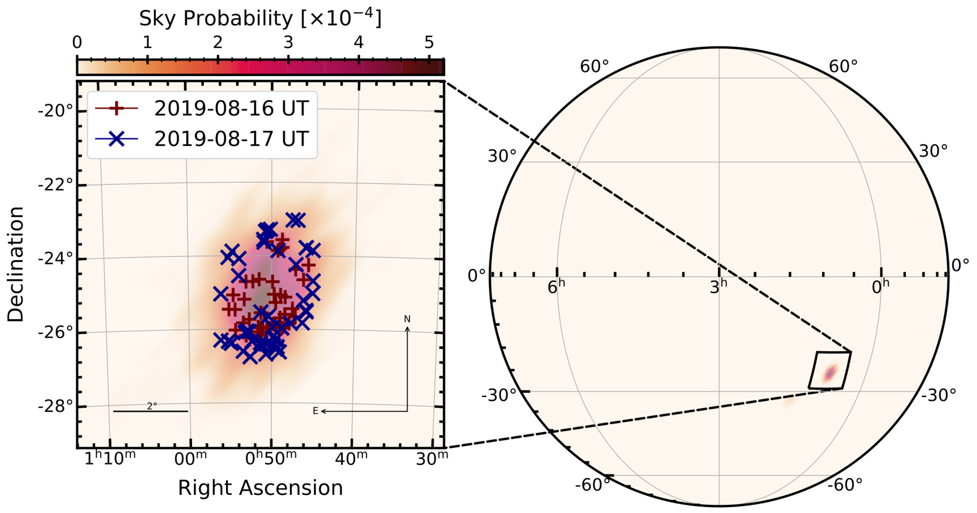The LIGO interferometer is constantly “listening” to the sky, searching for merging stars. When two black holes, two neutron stars, or a neutron star and a black hole crash into each other LIGO is able to hear it and point us in the right direction. In September 2019 LIGO detected on of these mergers, S190814bv. Subsequently, we used one of the Magellan 6.5m telescopes to scan this region LIGO pointed us in, searching for any galaxy that show a new light source. Unfortunately this time, we were not able to find any.